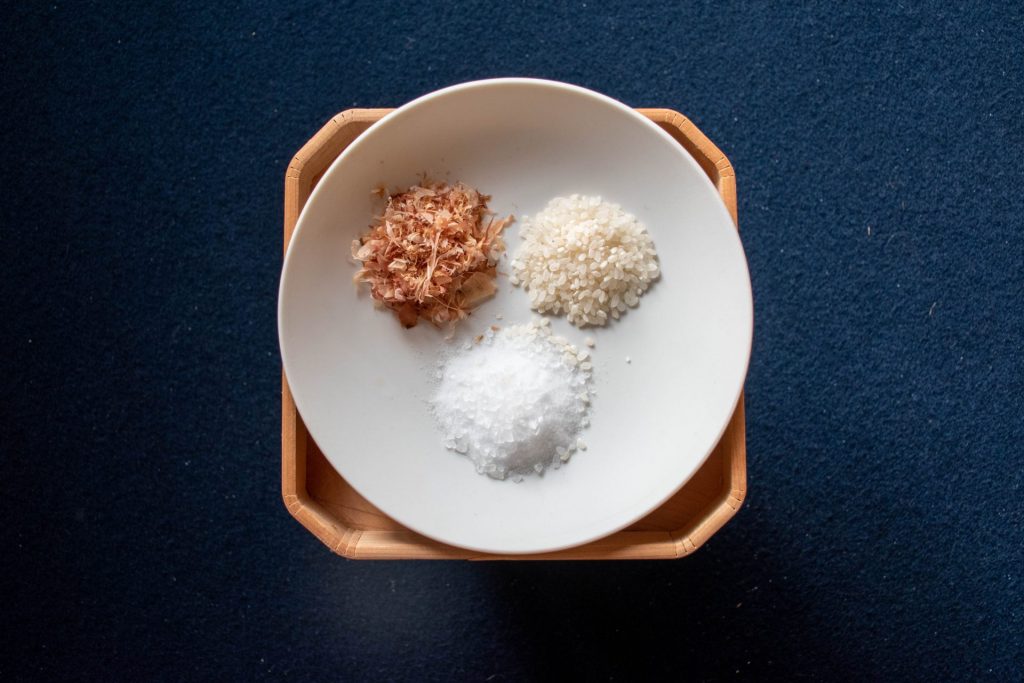 Il rituale è il seguente: dopo aver deposto il carbone nel focolare, facciamo un’offerta di sale, riso crudo e scaglie di bonito. Il sale serve a purificare il cuore. Il riso è dare un’offerta delle cose che otteniamo dalla terra. E i fiocchi di bonito sono un’offerta delle cose che otteniamo dal mare. In questo modo abbiamo un po’ di tutto.