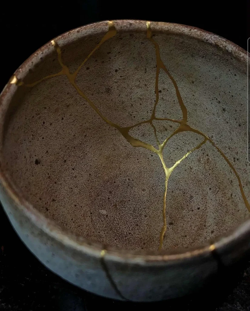 No! Questa è una lezione che impariamo dalla cerimonia del tè, prendi quei pezzi e li rimetti insieme e la rendi ancora più bella. Questa è l’arte del kintsugi. Per rimettere insieme questi pezzi di ceramica rotti con vernice e oro. Non solo aggiunge valore a quel pezzo rotto, ma gli dà anche una storia in più da raccontare.
