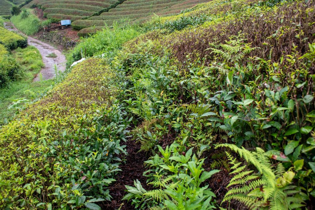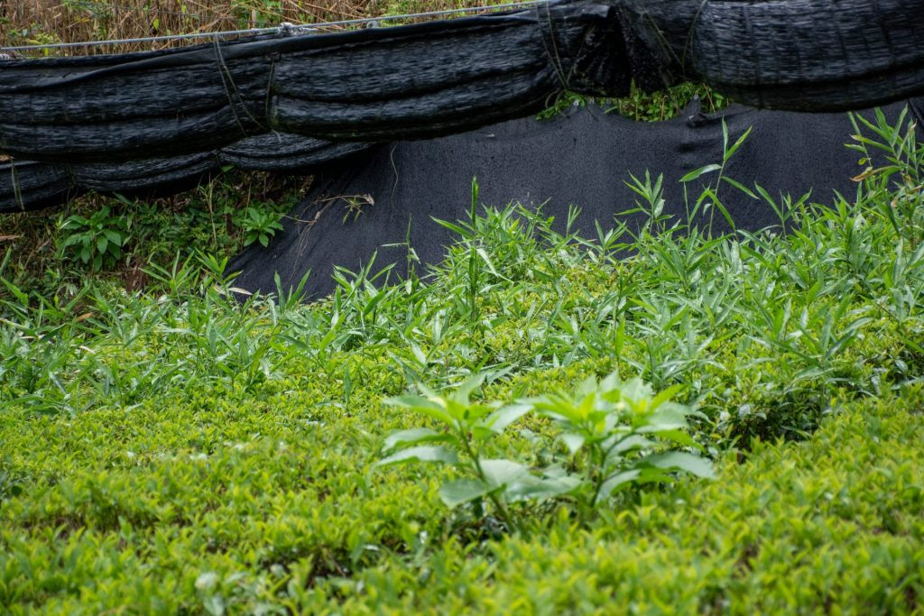 “Se diamo un’occhiata al giardino del tè convenzionale adiacente al mio, vedrai che ci sono danni da insetti e che c’è qualche malattia sulla foglia di tè. Alcune delle foglie di tè sono colorate di giallo. Ciò accade quando gli insetti bevono la linfa dalla foglia, il che le fa cambiare colore. E alcune foglie hanno danni da muffe o batteri. Sebbene sia la stessa area, ci sono diverse differenze tra i due giardini di tè”.